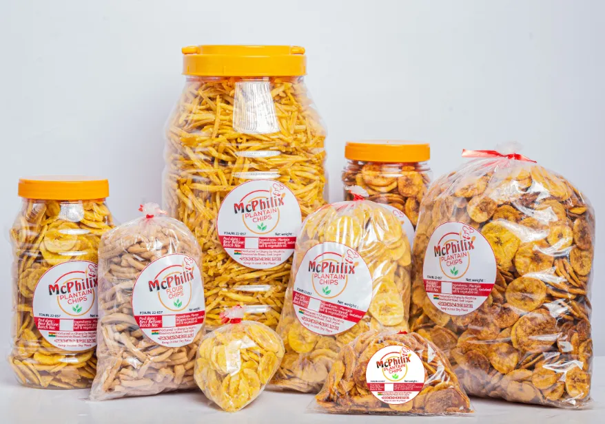 Since our humble beginnings in December 2014, Mcphilix Foods has been dedicated to crafting the finest plantain chips, peanuts, gob3 (gari and beans) and other traditional treats that celebrate the rich culinary heritage of Ghana. Our journey, underpinned by perseverance and determination, has led us to become a trusted name in the snack and food industry, both locally and internationally.